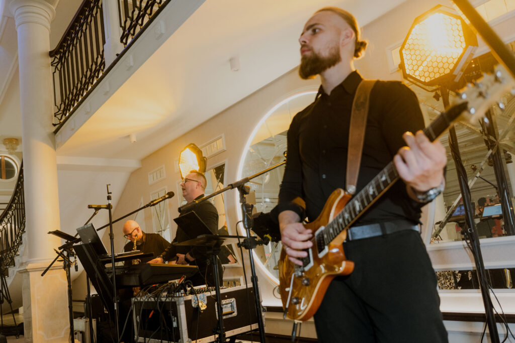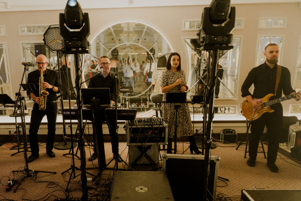 Wyjątkowa czwórka przyjaciół, których połączyła muzyka. Każdy ma wykształcenie muzyczne, lecz wciąż rozwijają swoje talenty. Szalony Saksofonista Darek wkracza w tłum gości i porywa do tańca, a ponadto śpiewa równie przebojowo tak, jak gra! Wokalistka Agata z głosem niczym kameleon jest wulkanem pozytywnej energii. Ciepłem w głosie ogrzewa serca gości. Lider zespołu Radosław Matuszewski jako wodzirej i konferansjer zadba o szampańskie humory i uświetni wesele swoim czystym, oryginalnym głosem. Zawsze uśmiechnięty gitarzysta i akordeonista Artur zadba o oprawę instrumentalną zarówno na scenie jak i przy biesiadzie! przy stołach POSŁUCHAJ NASZE DEMO